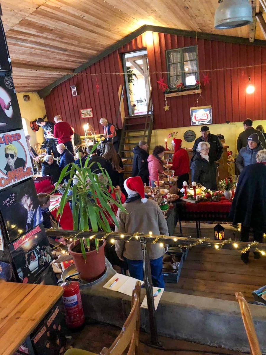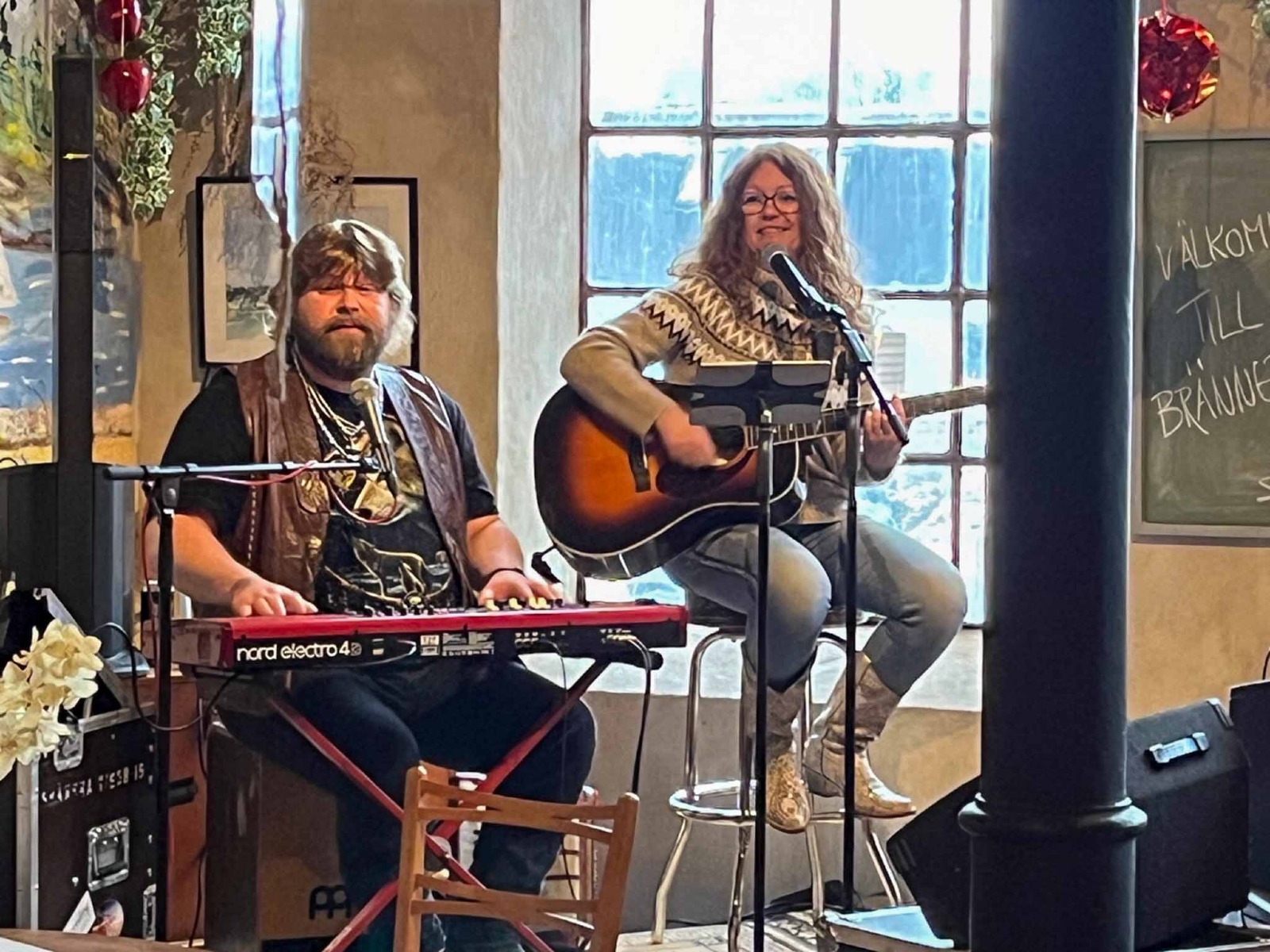 I kaféet underhöll Skånska visor.