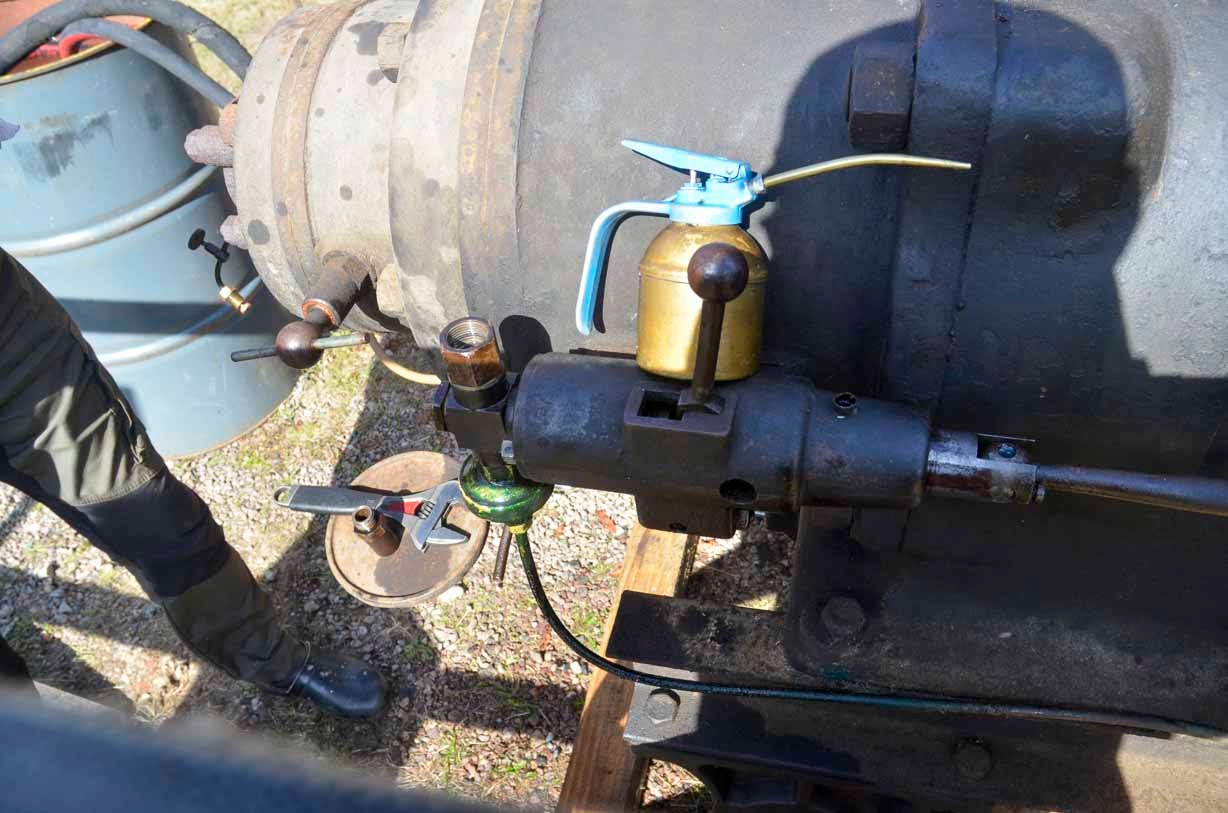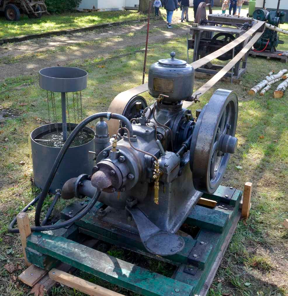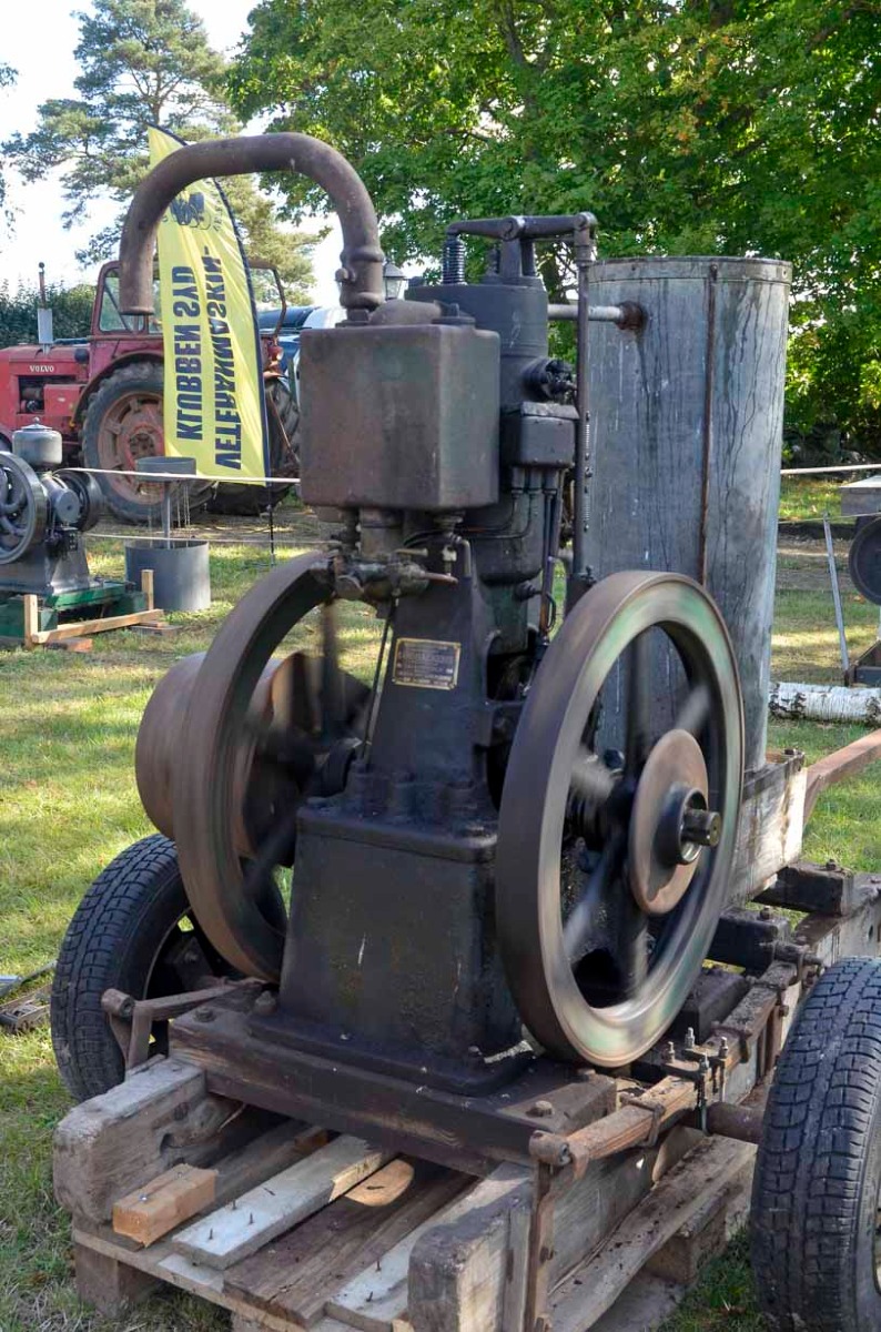 Det första som mötte oss var nyförvärvet, en fotogenmotor typ A från Sandbäckens Mekaniska verkstad Katrineholm från 1915.