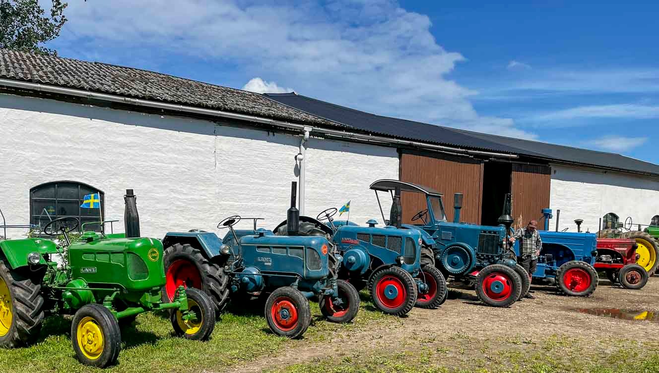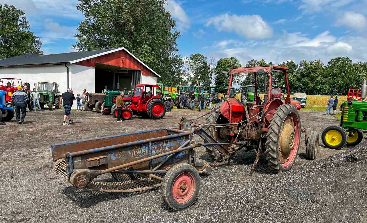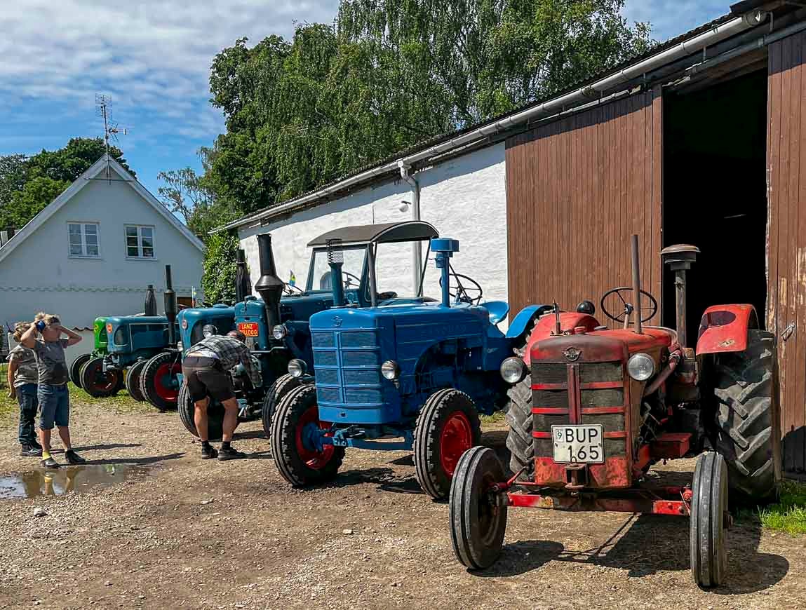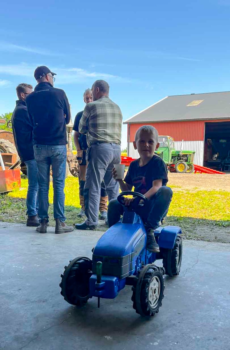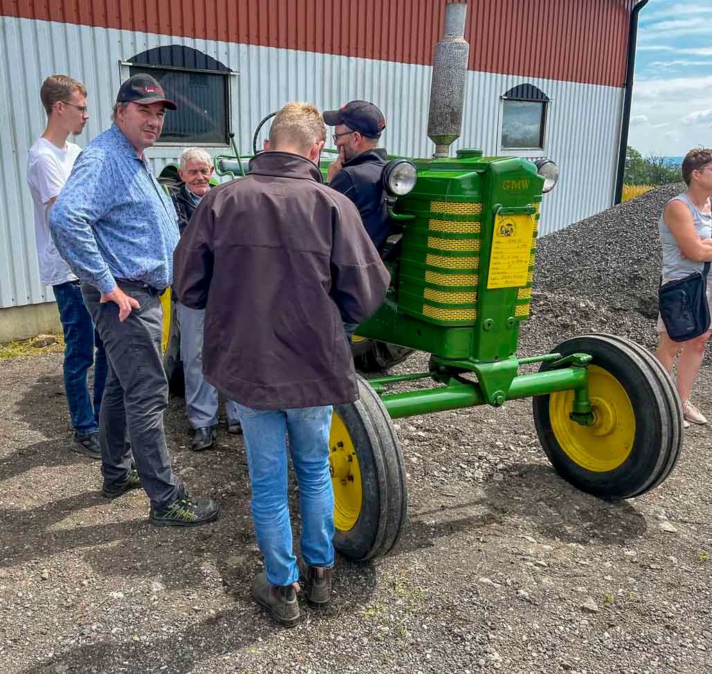 Verkstaden hade utrymts för att ge plats åt fika och grillkorv. I bakgrunden skymtar en Lanz under renovering.