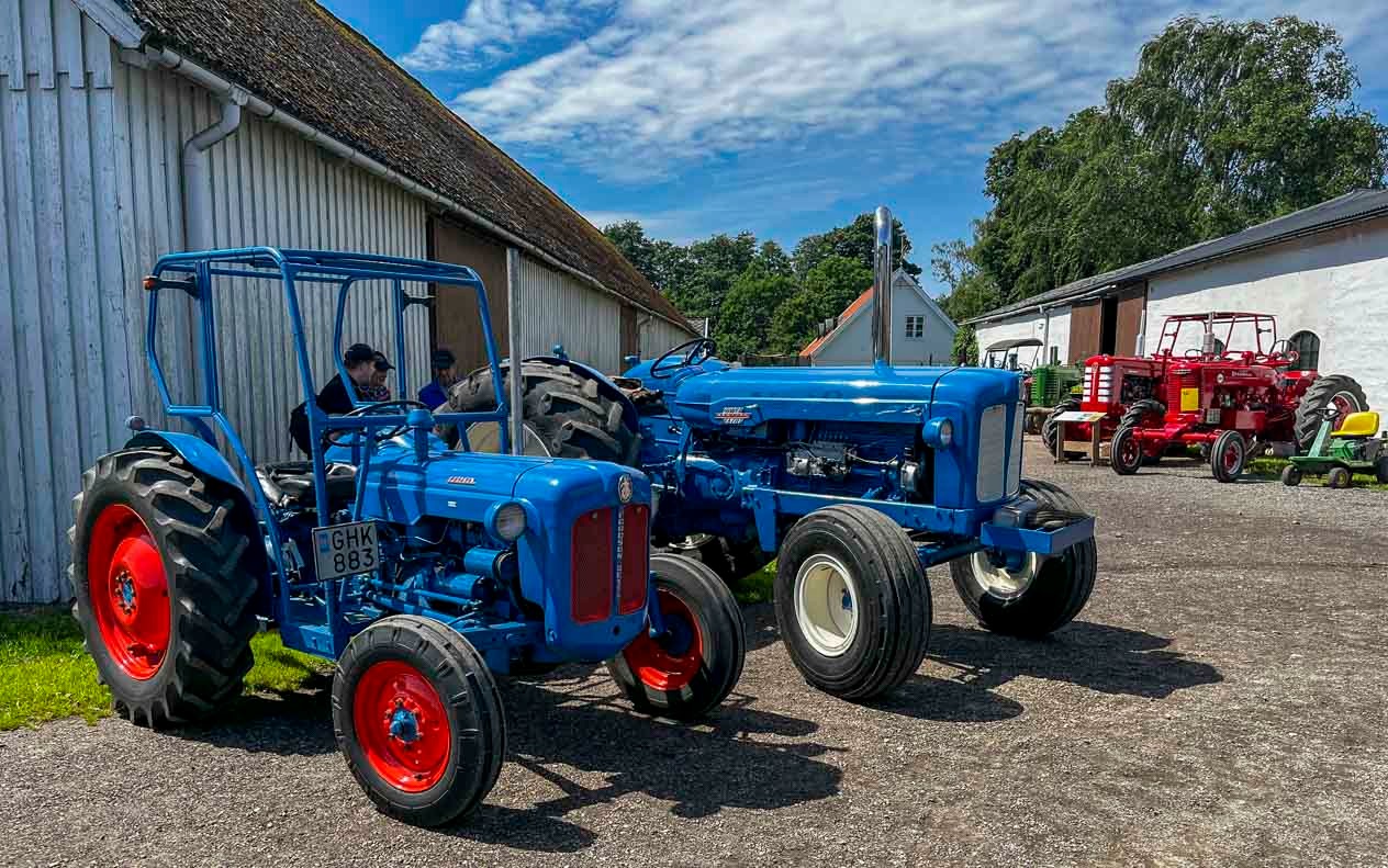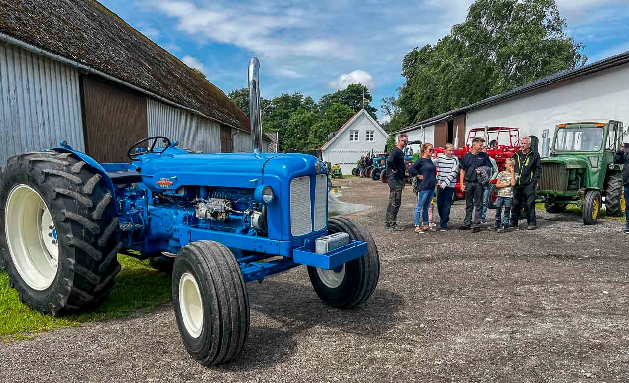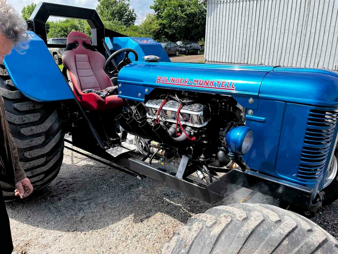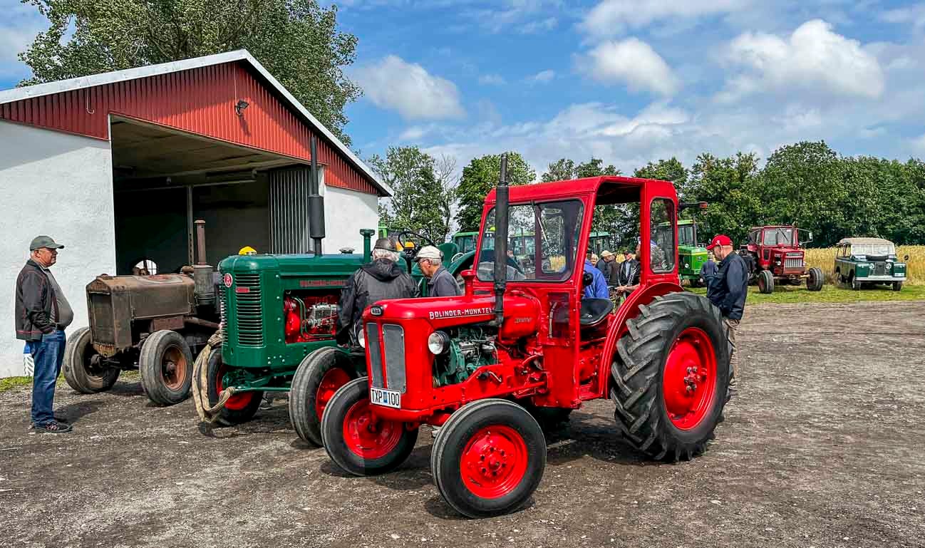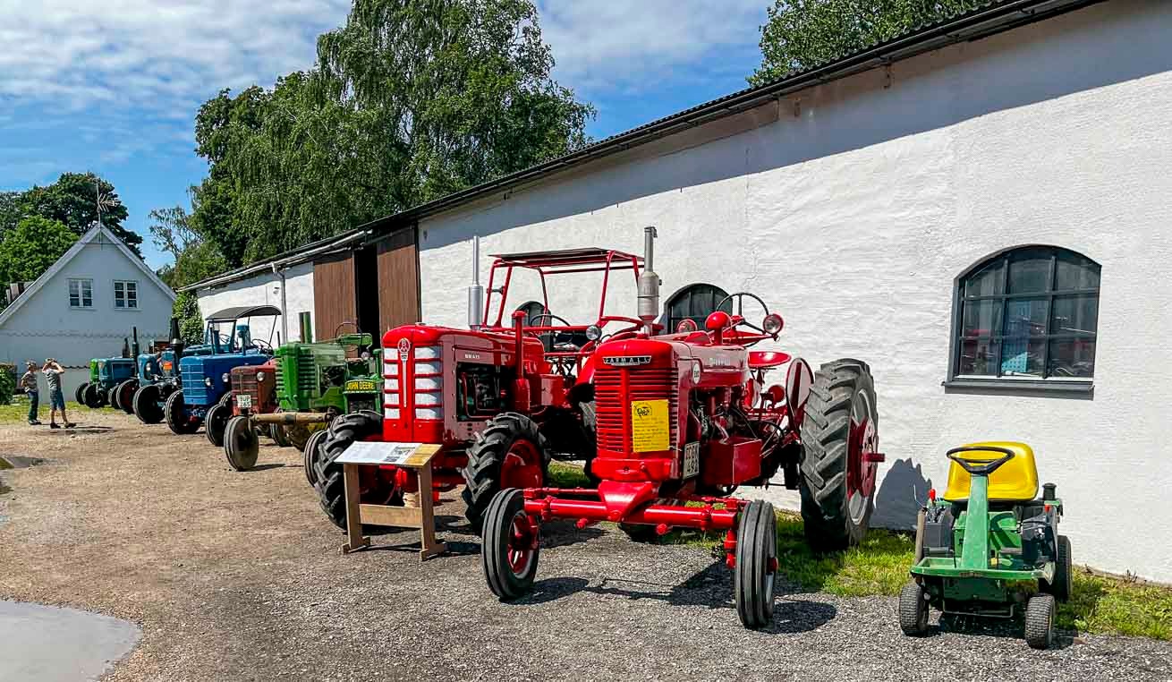 Verkstaden hade utrymts för att ge plats åt fika och grillkorv. I bakgrunden skymtar en Lanz under renovering.