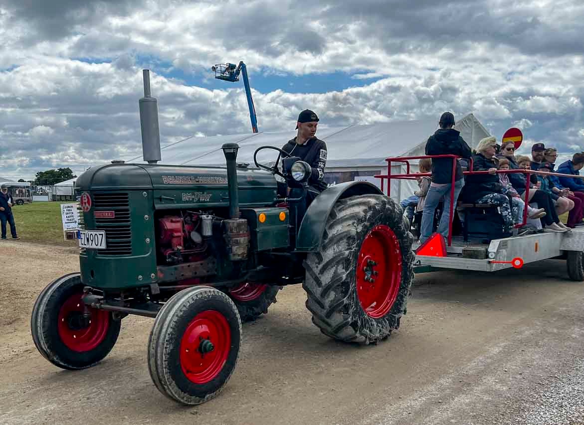 Sven på en lånad traktor.