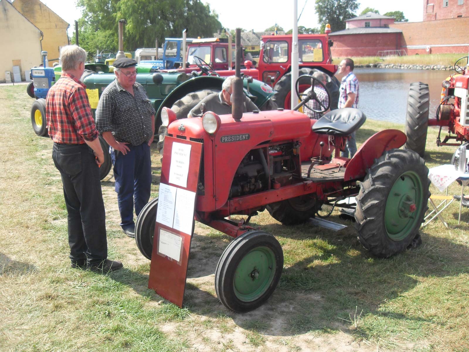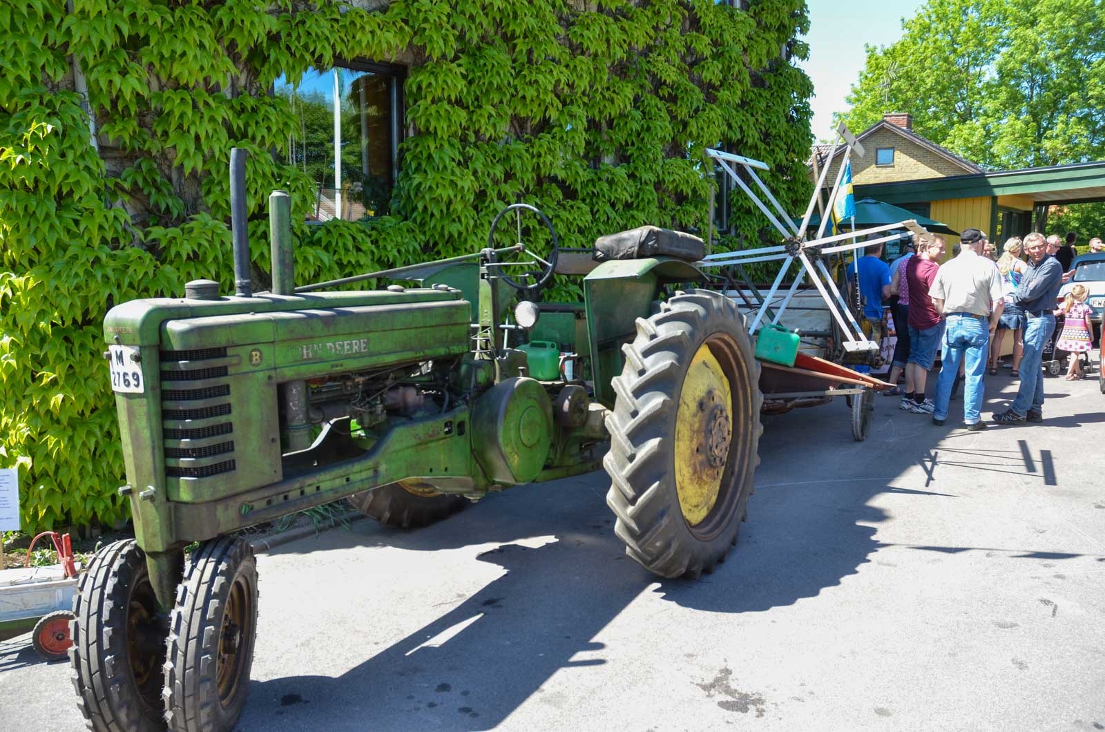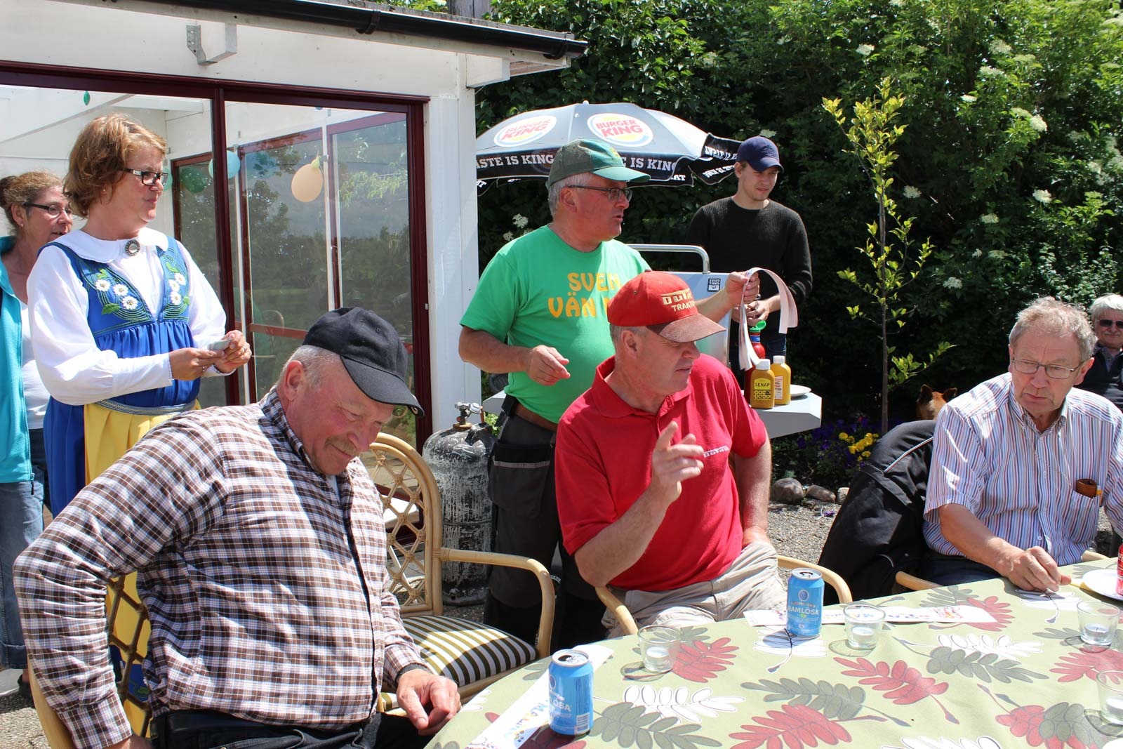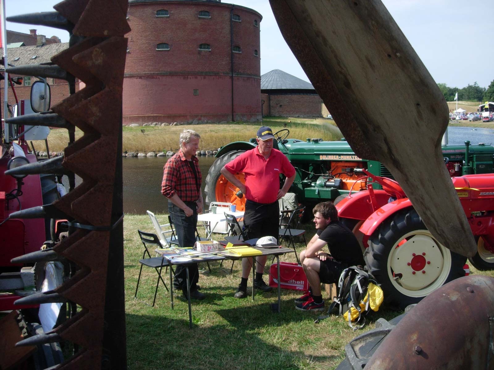 Traktordiskussioner till fikat i trädgården den strålande sommarsöndagen