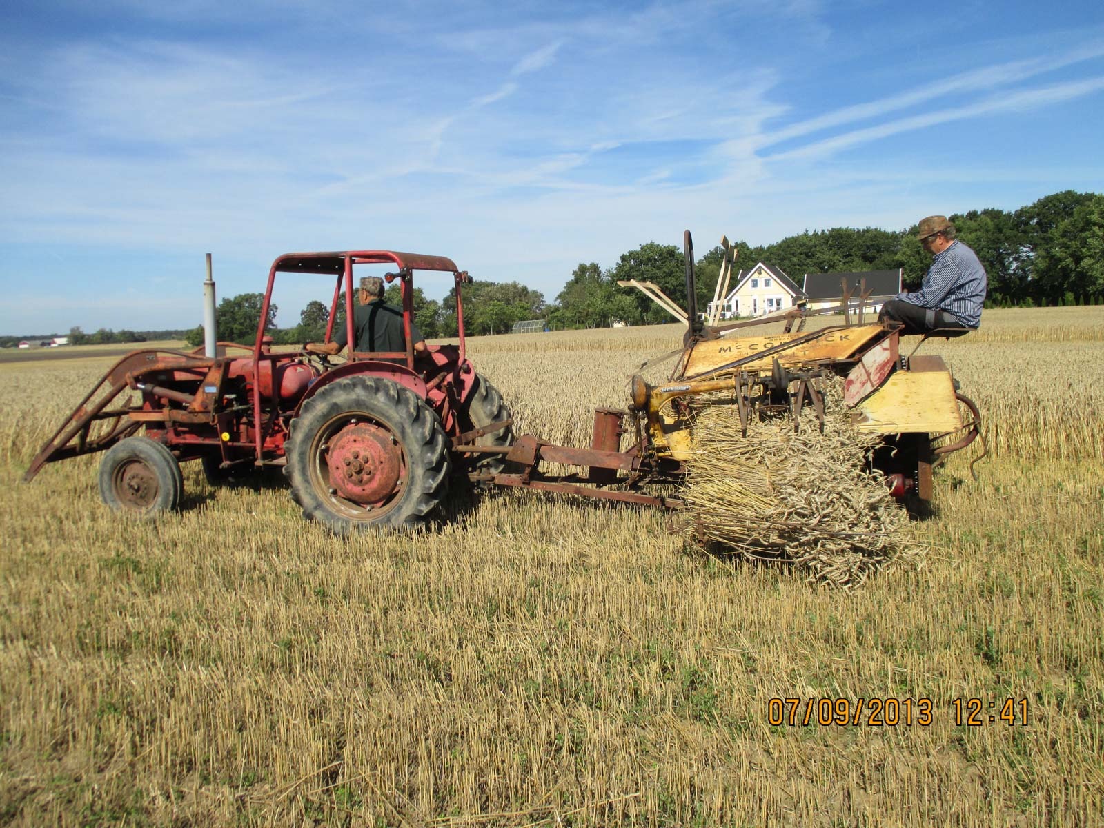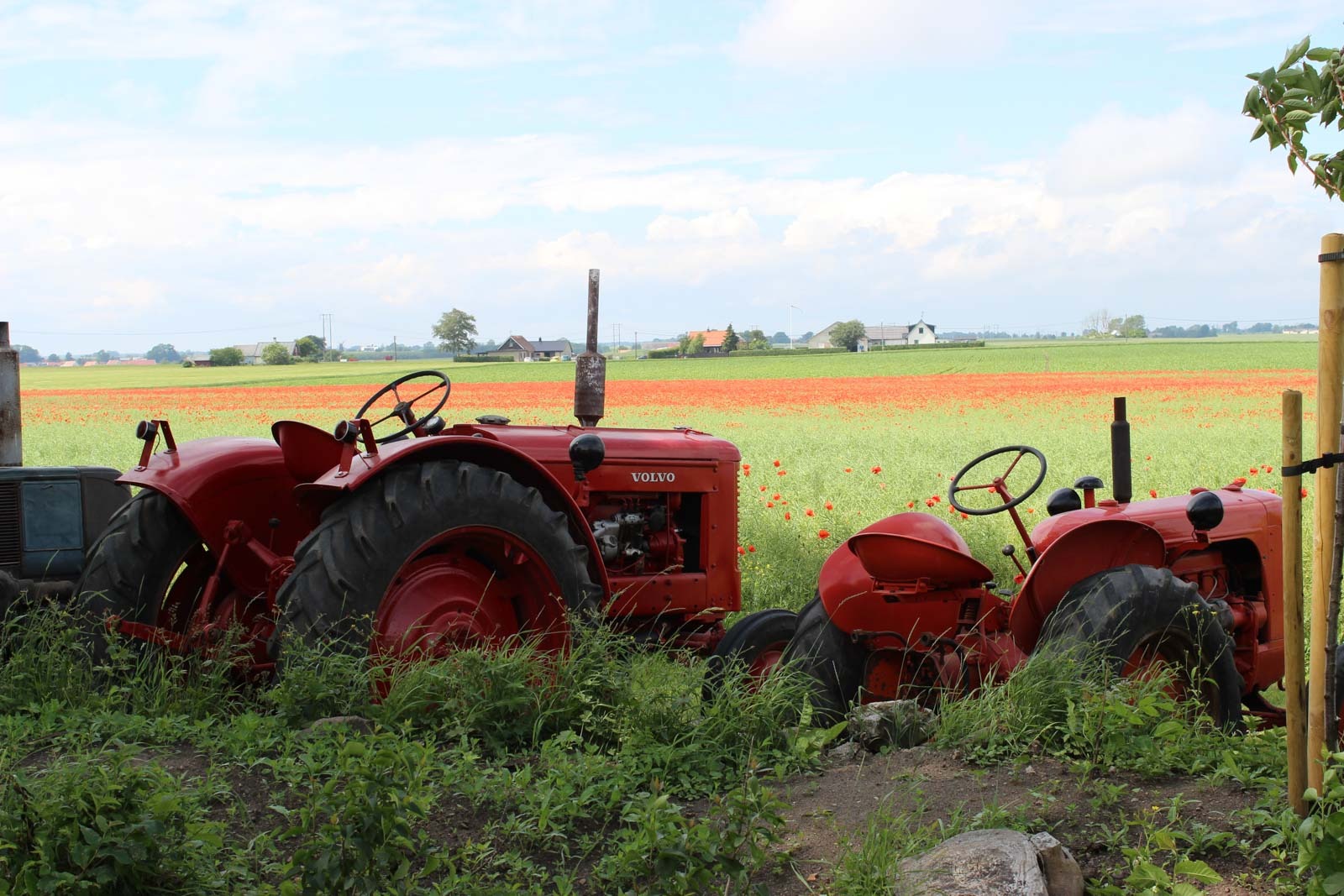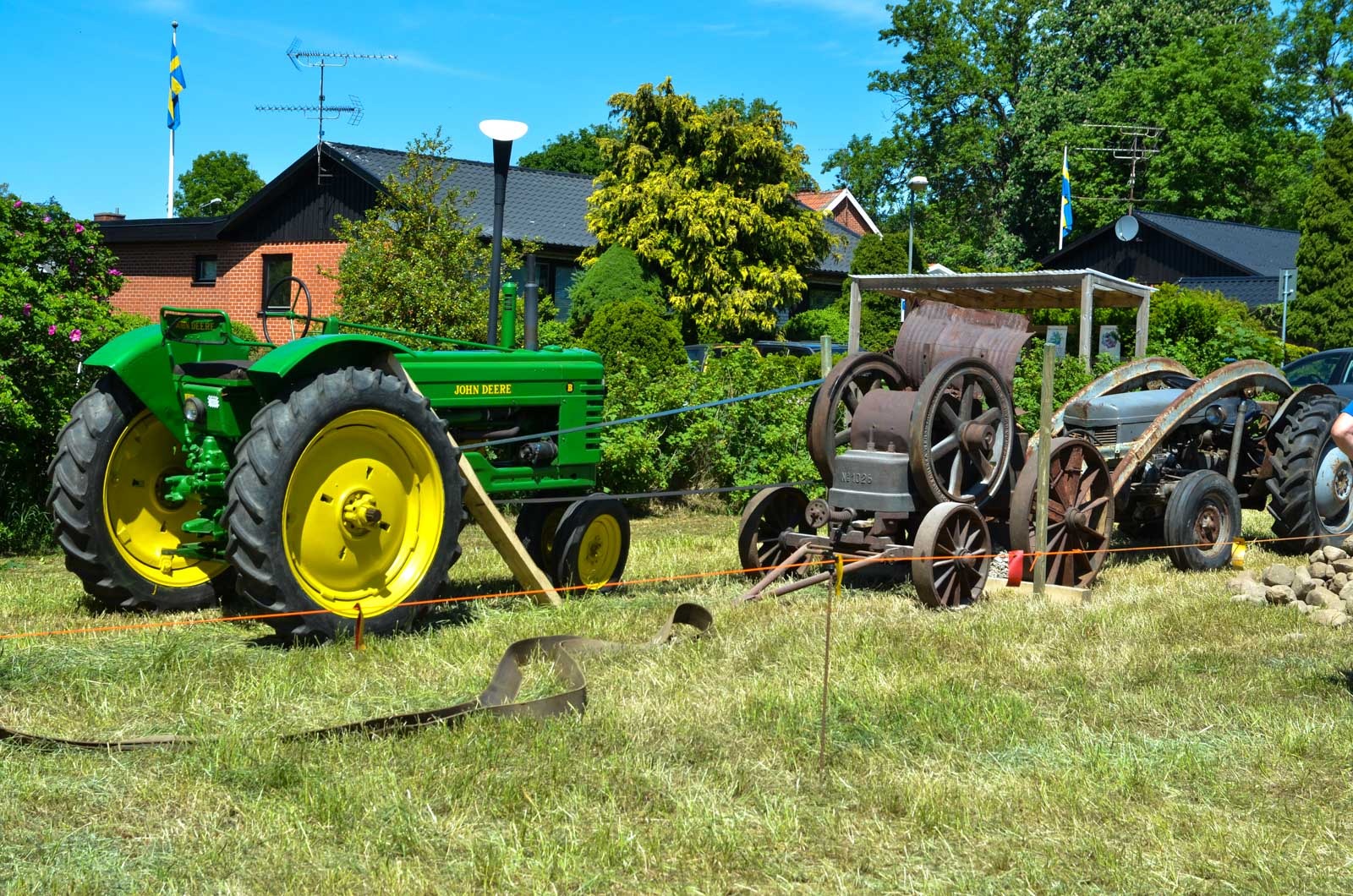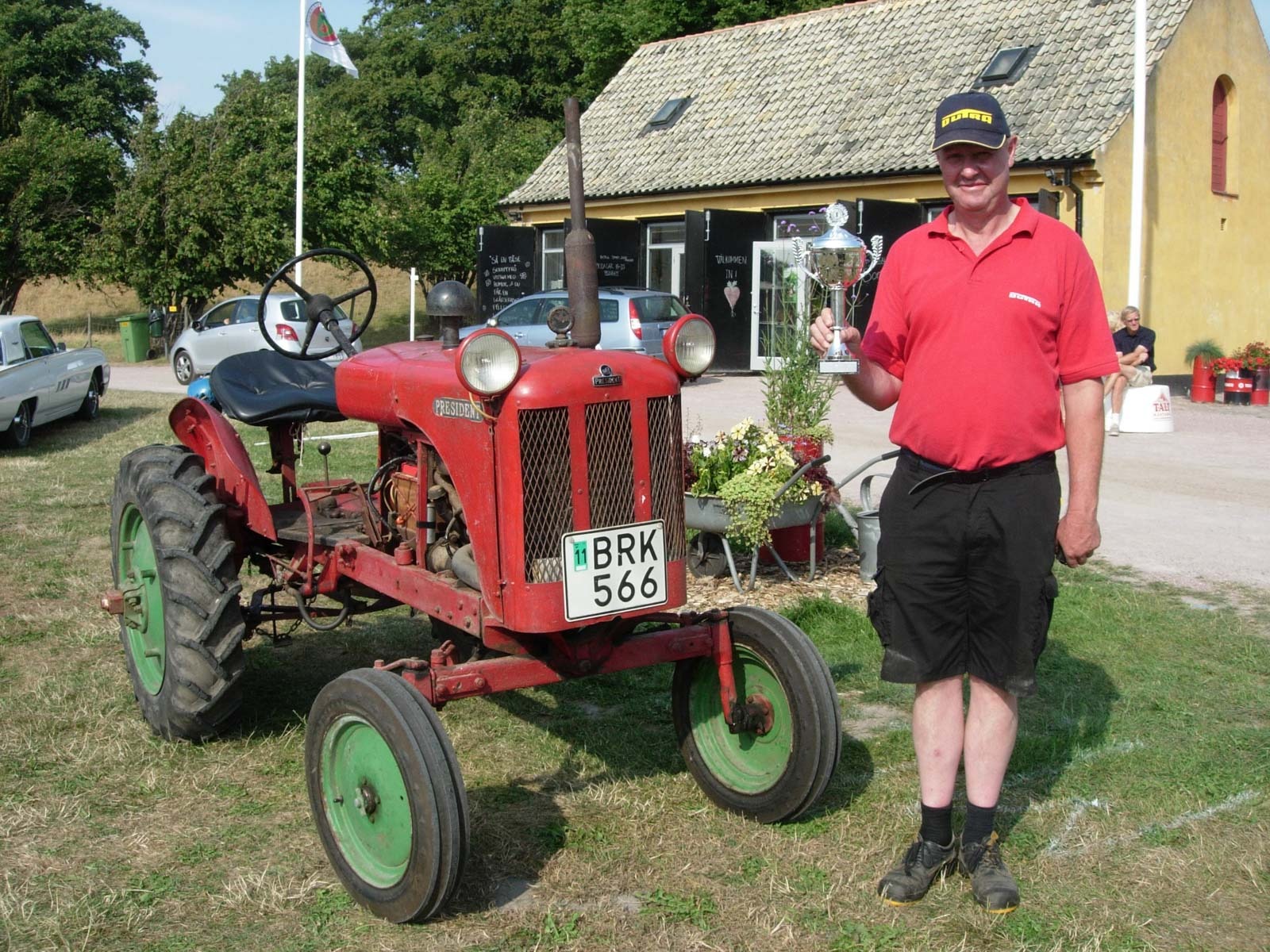 Traktordiskussioner till fikat i trädgården den strålande sommarsöndagen