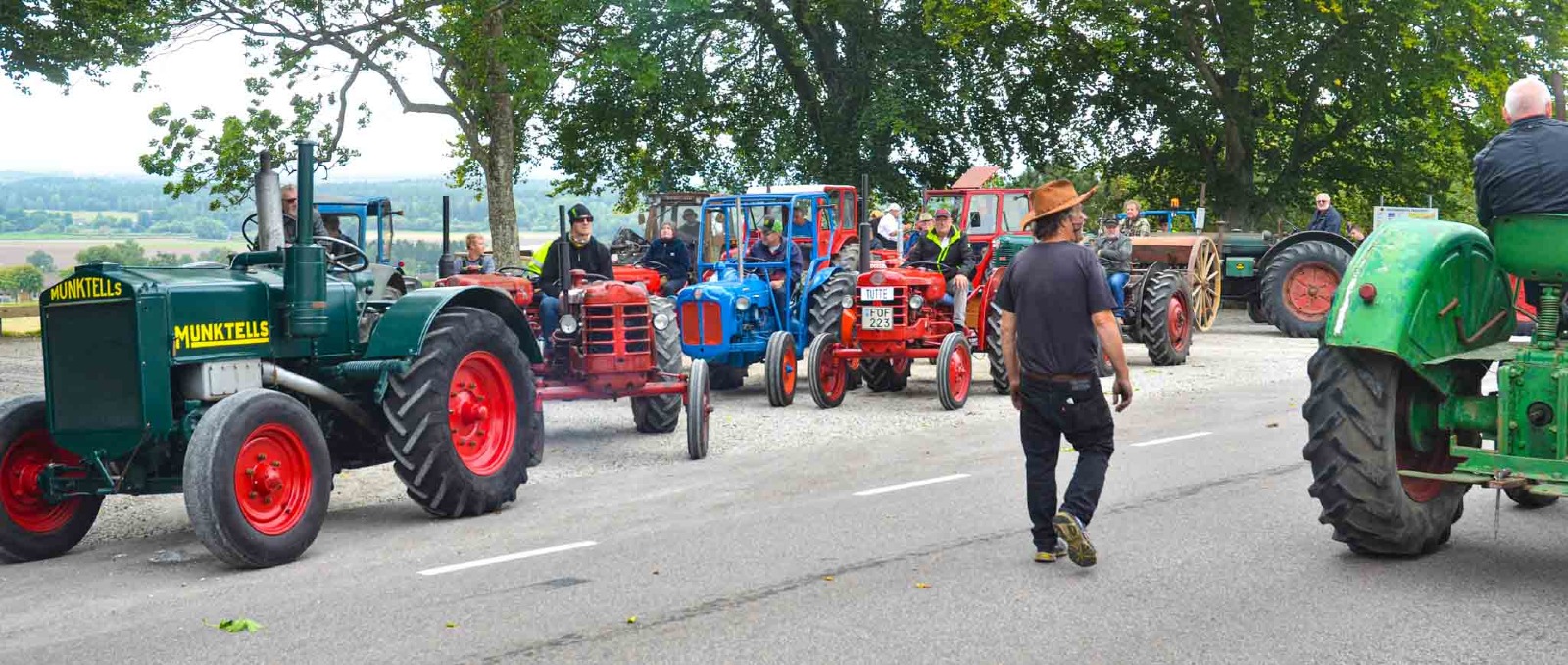 Anders på Ängdala Traktormuseum och Sven på Bränneriet i Harlösa tog initiativet till en traktorkortege med start vid Nostalgimacken. Det var ett fyrtiotal traktorer som ställde upp och nästan alla kom i mål. Lite spill får man räkna med. Sven hade lagt upp längre runda än vi brukar köra, upp över Harlösa backar och ner vid kyrkan. Vi hann med en paus vid Bligehöj för att beundra utsikten och varandras traktorer. Paraden avslutades på Ängdala Traktormuseum. Den populära duon Skånska Visor underhöll där med många skånska godbitar. Kul att de bevarar den Skånska vistraditionen. Emil grillade korv för glatta livet, ingen gick därifrån hungrig. Tack Anders och Sven för ett fint arrangemang som vi kan hoppas blir tradition. //Hälsningar Göran
