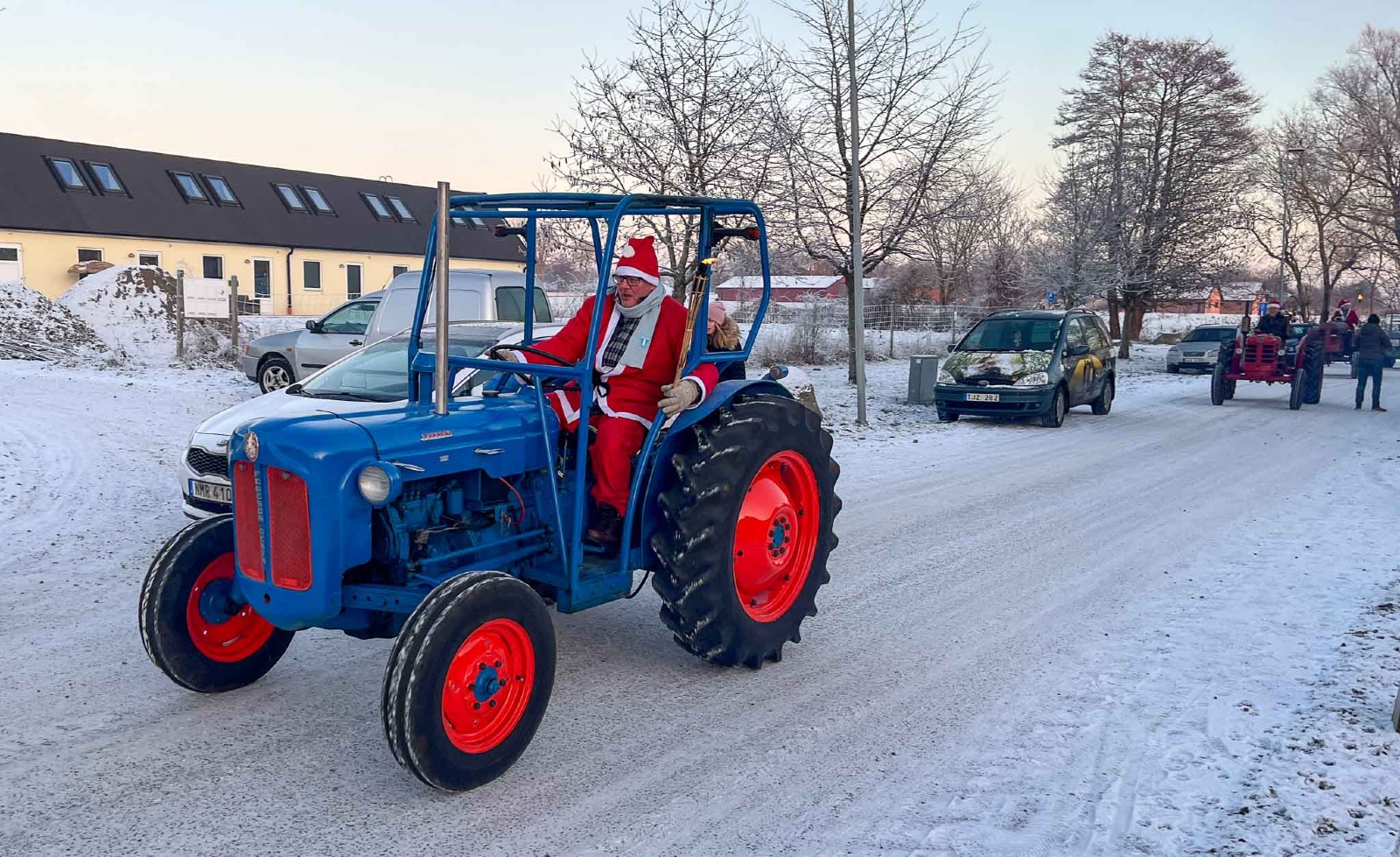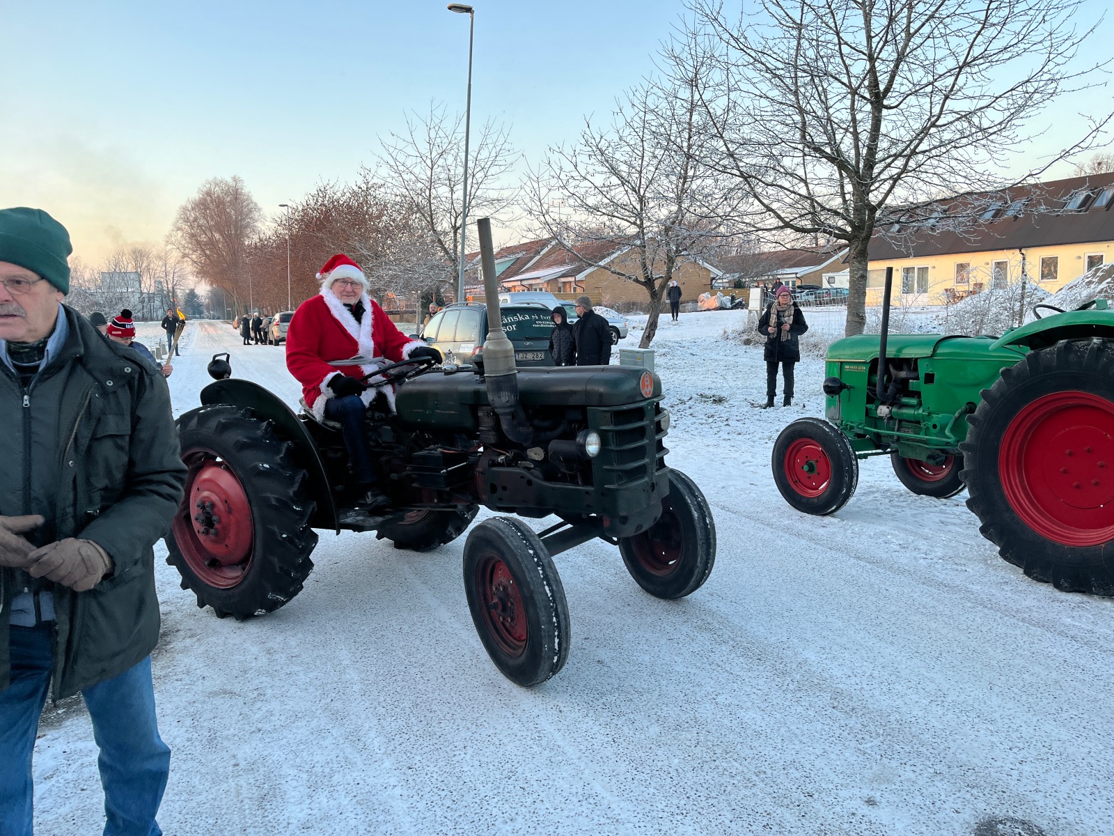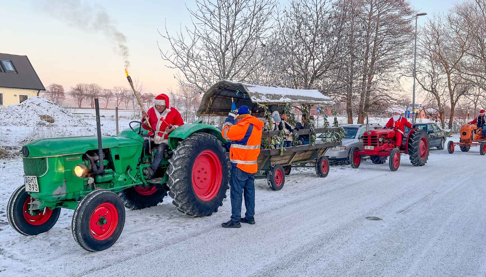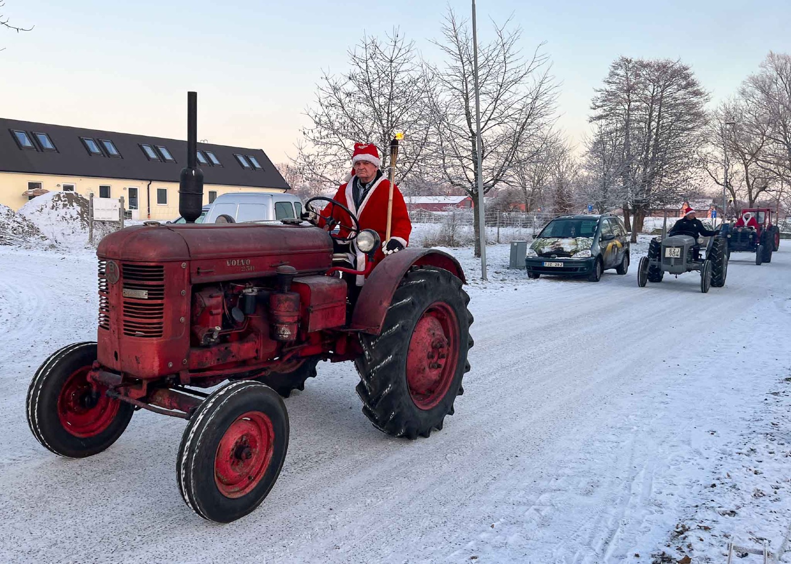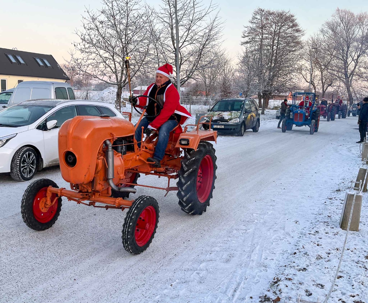 Trots en bitande kall vinterdag ställde ett 15:tal traktorförare upp på en tomteparad. Ingenting stoppar en möjlighet att få lufta traktorn.