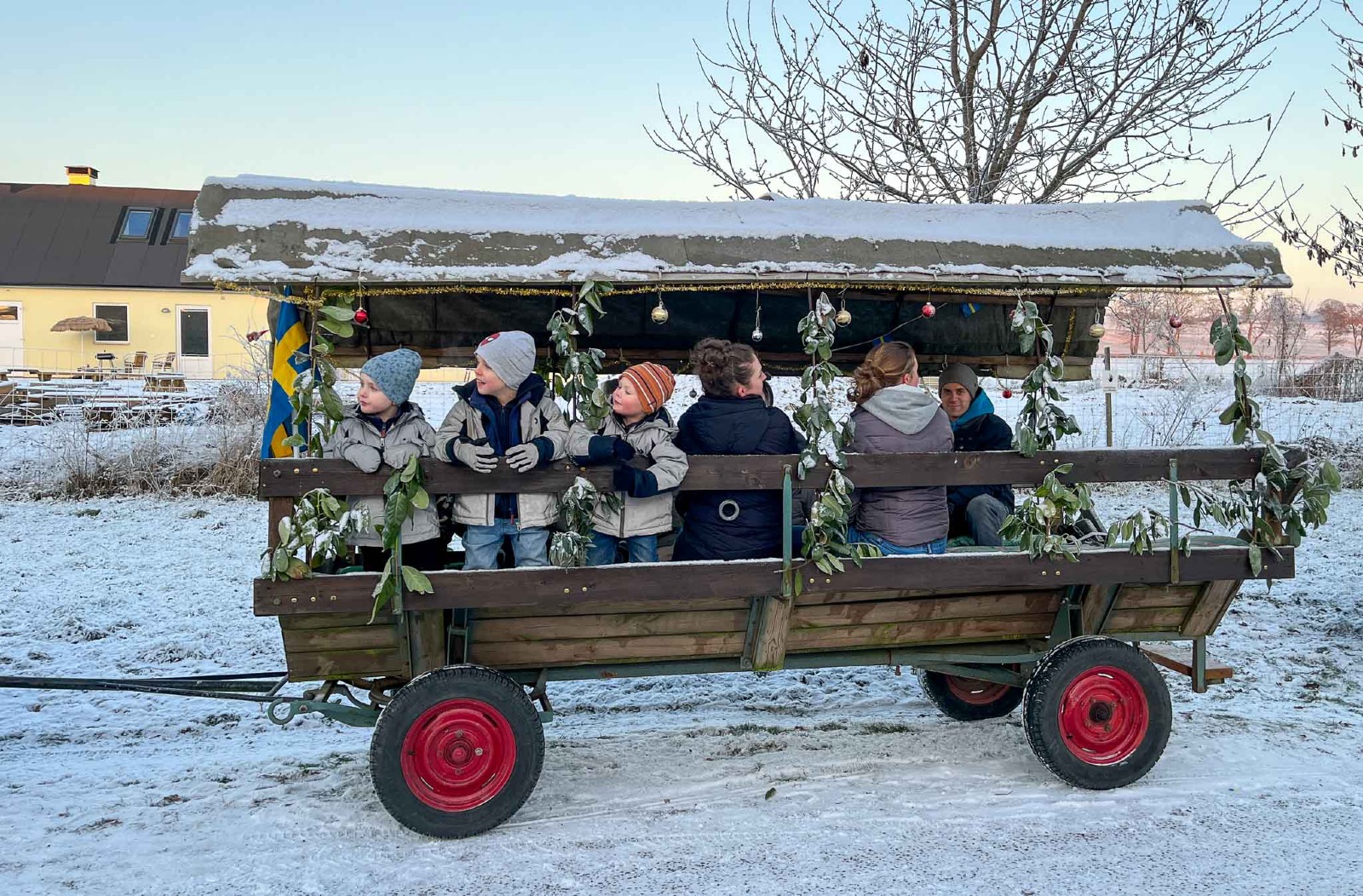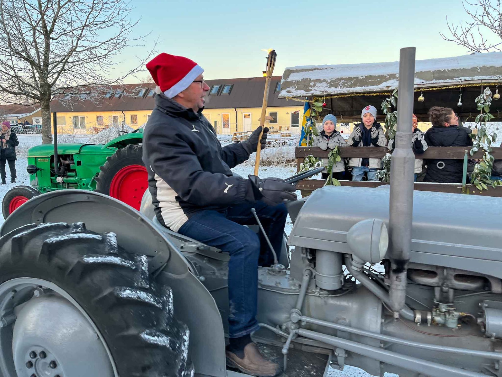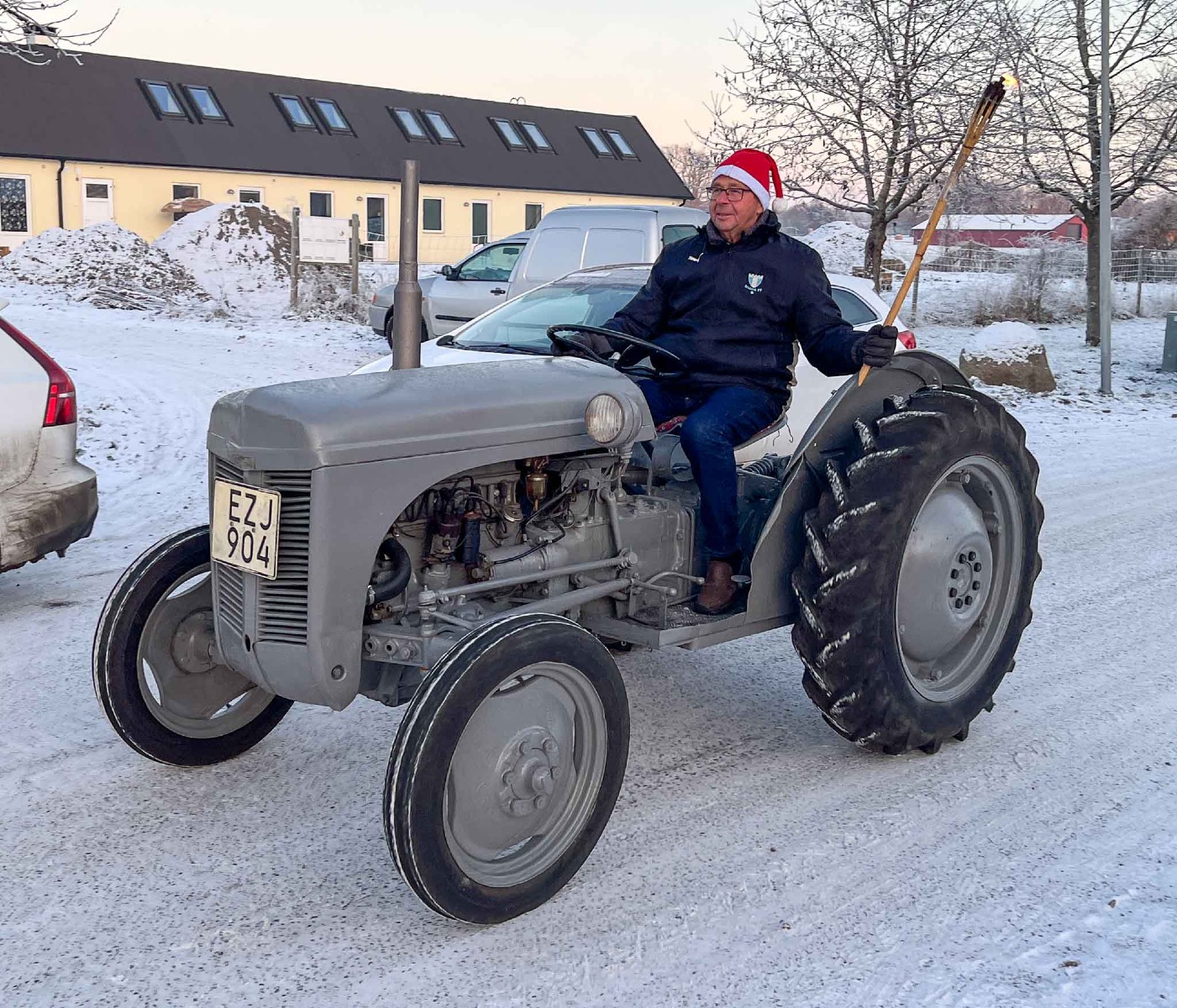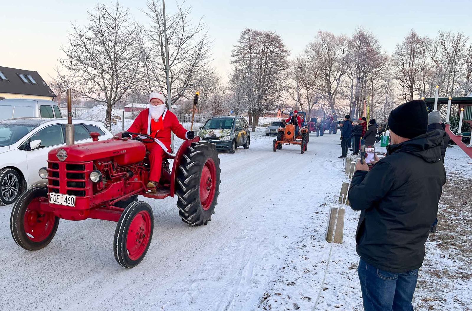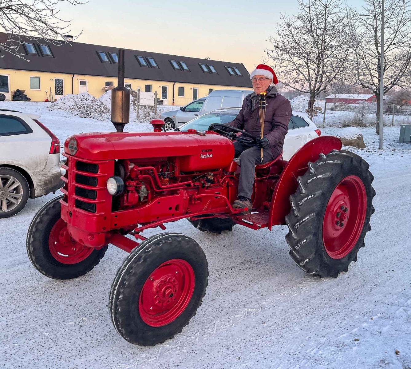 Trots en bitande kall vinterdag ställde ett 15:tal traktorförare upp på en tomteparad. Ingenting stoppar en möjlighet att få lufta traktorn.
