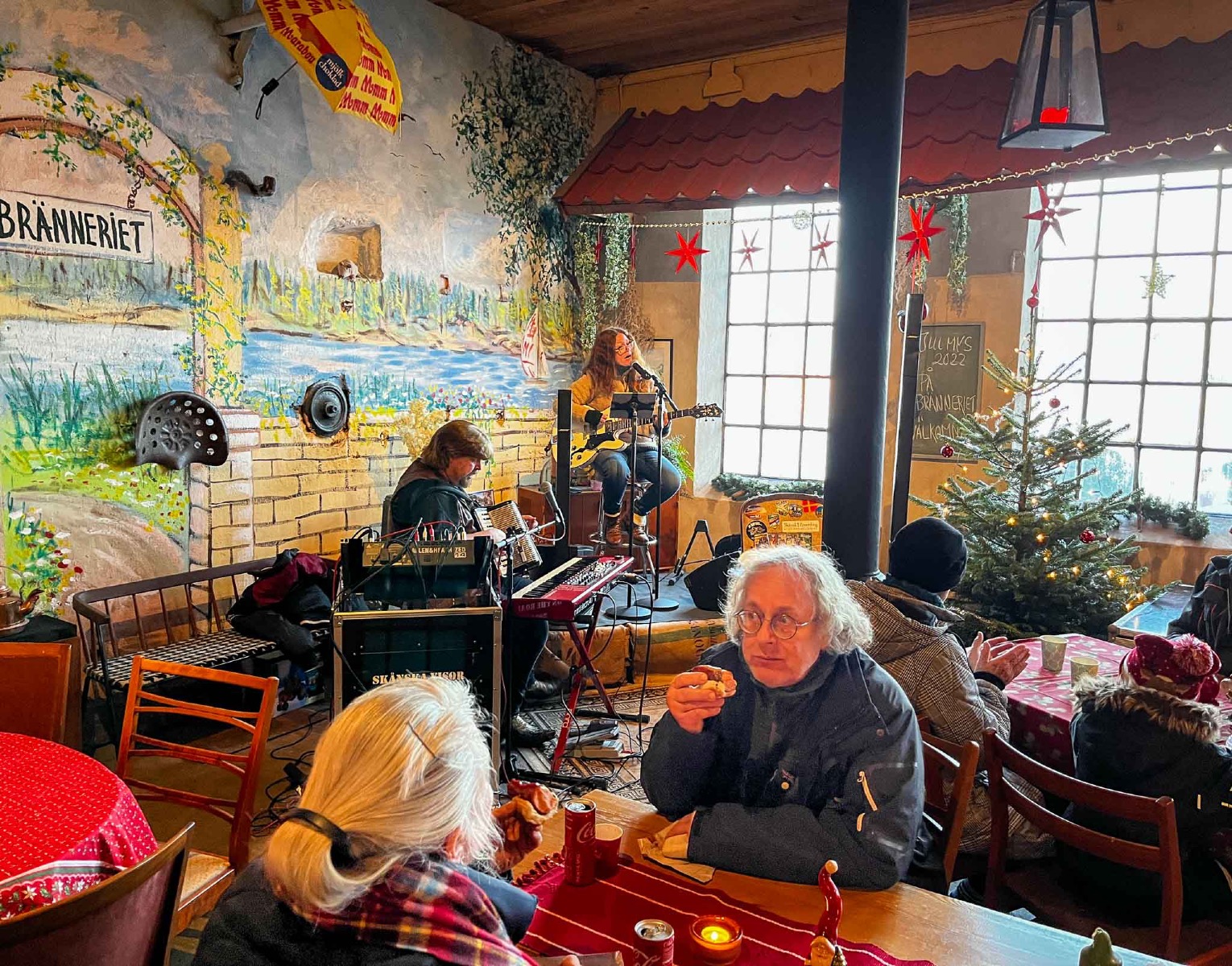 Fikapaus i kaféet. Underhållning med mysiga Skånska Visor -