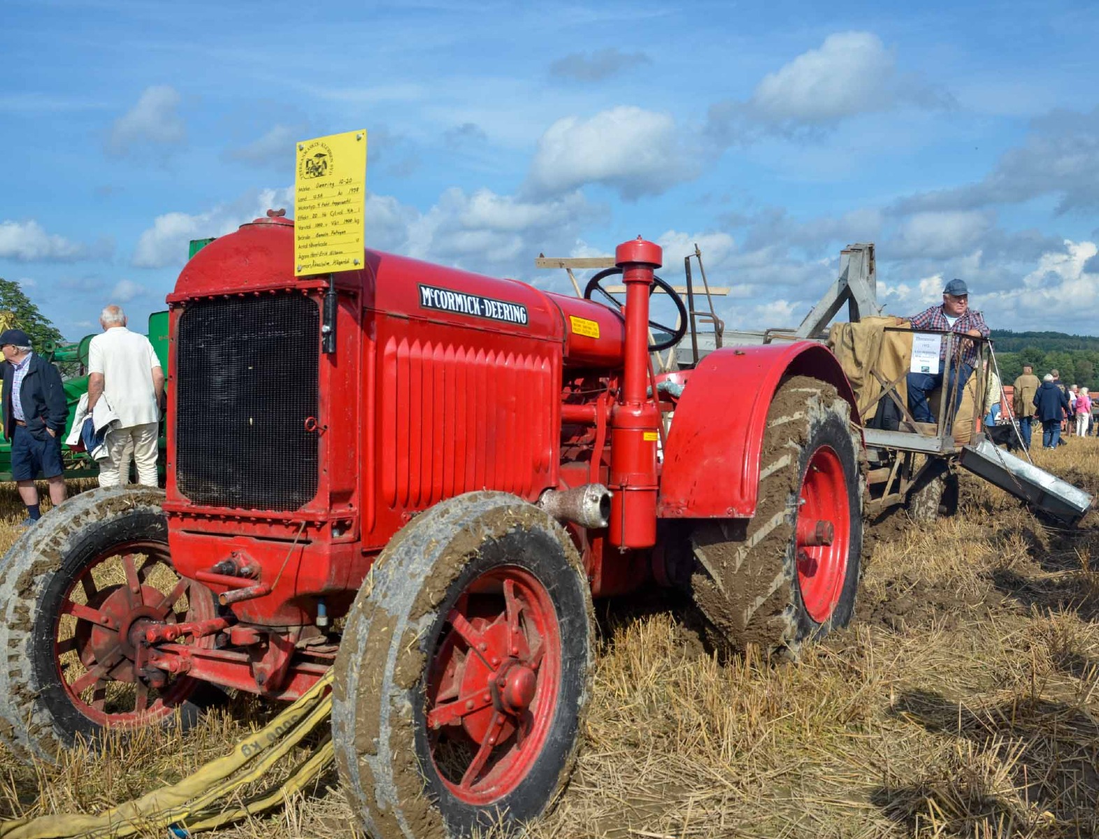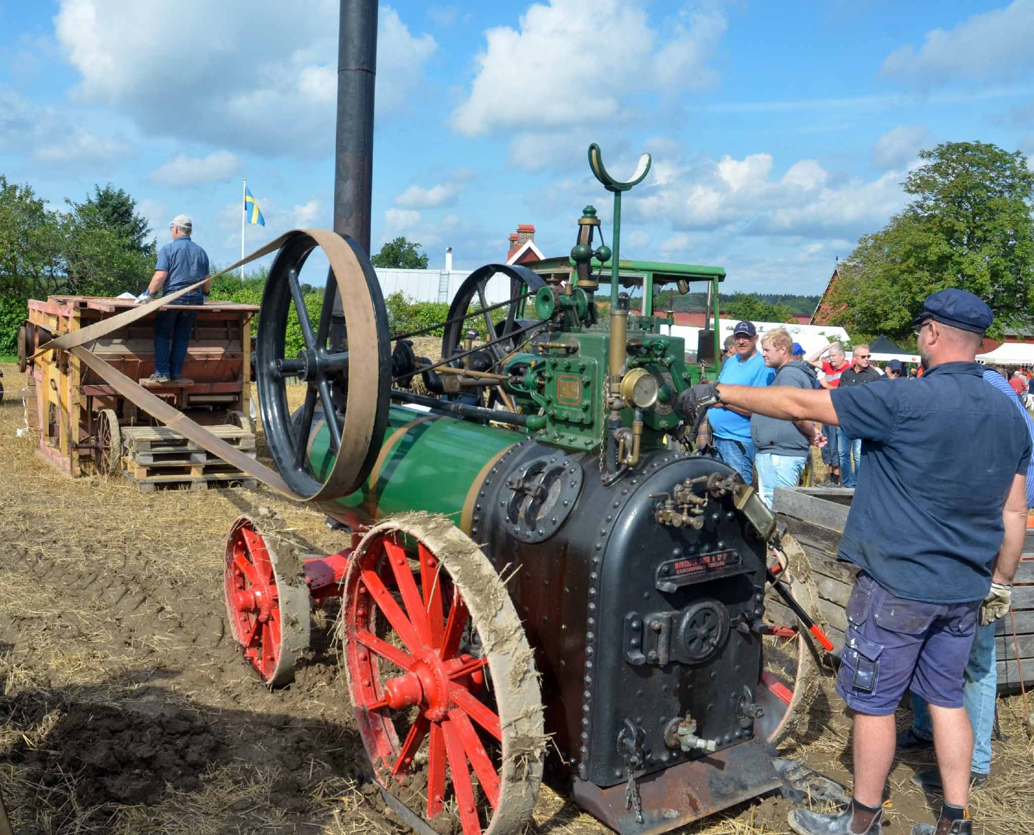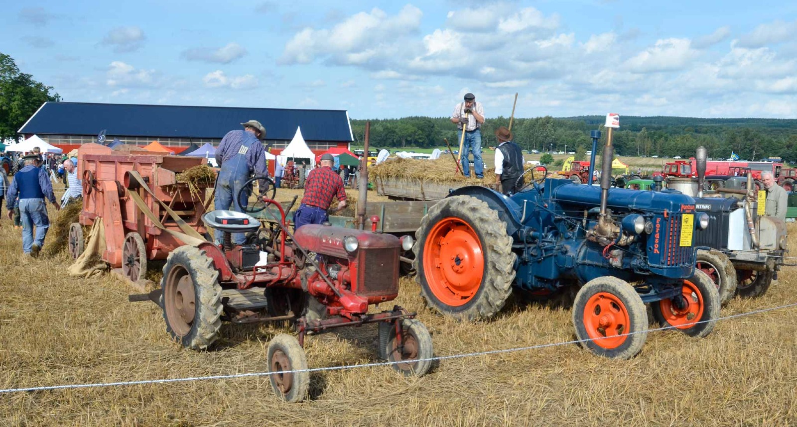 En liten Farmall CUB på 9,5 hp drar ett litet tröskverk