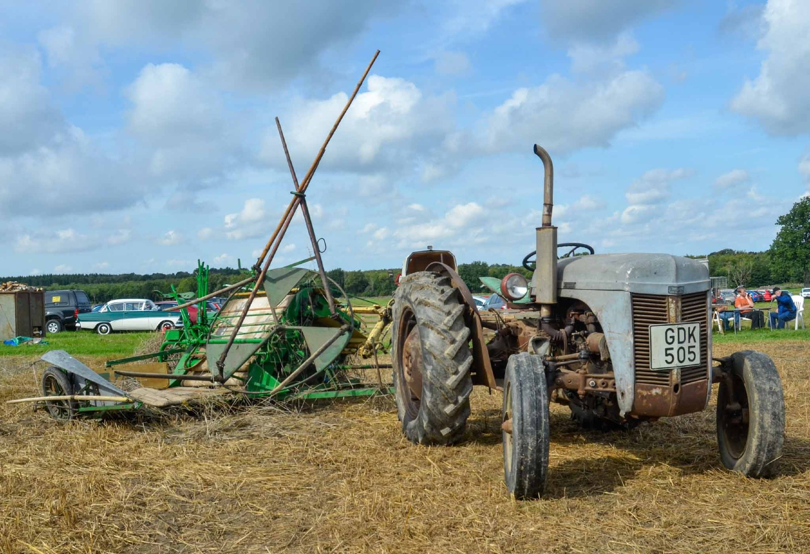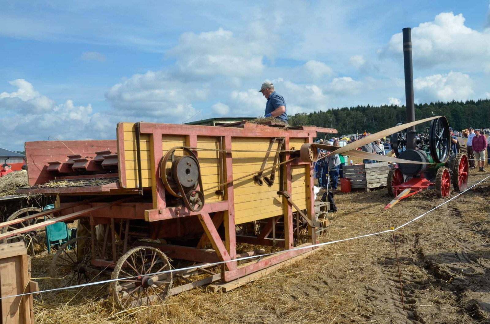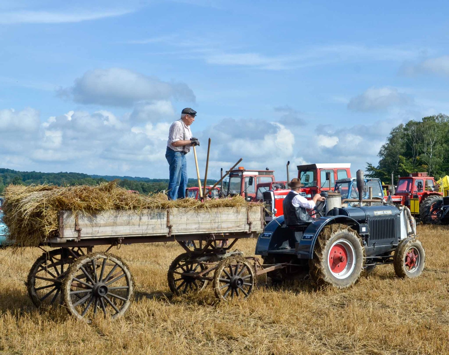 En liten Farmall CUB på 9,5 hp drar ett litet tröskverk