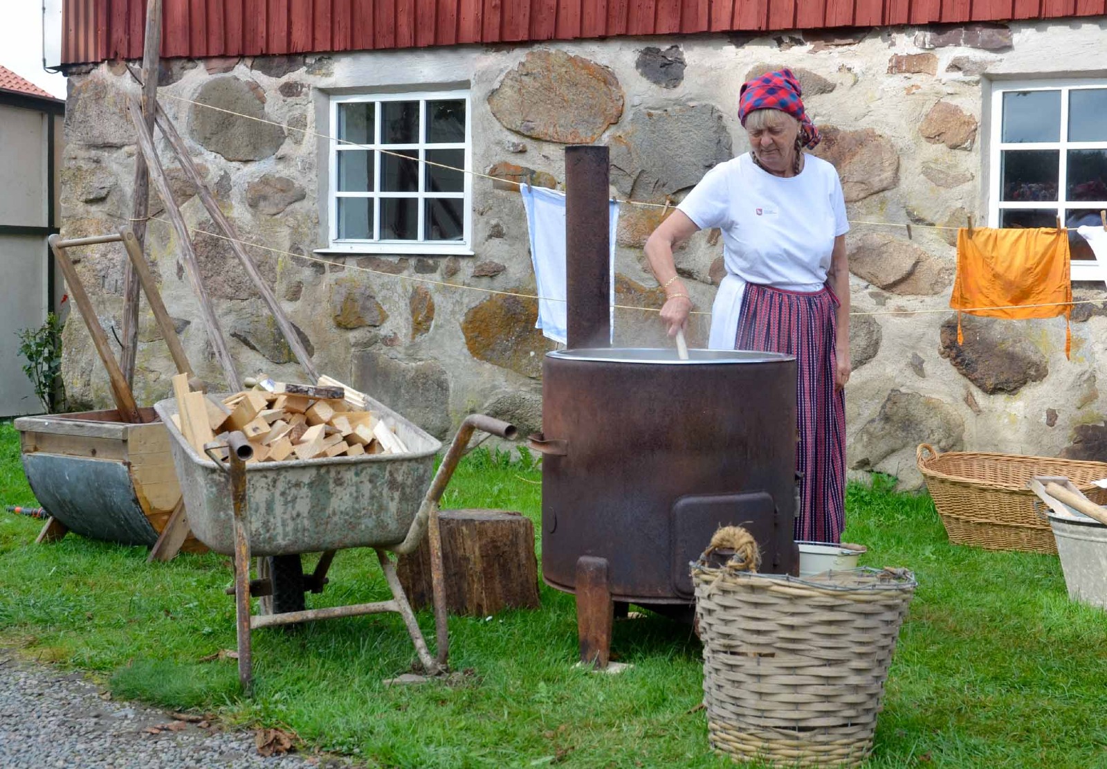 Full fart på tvättgrytan. lägg märke till tvätt vaggan i bakgrunden.