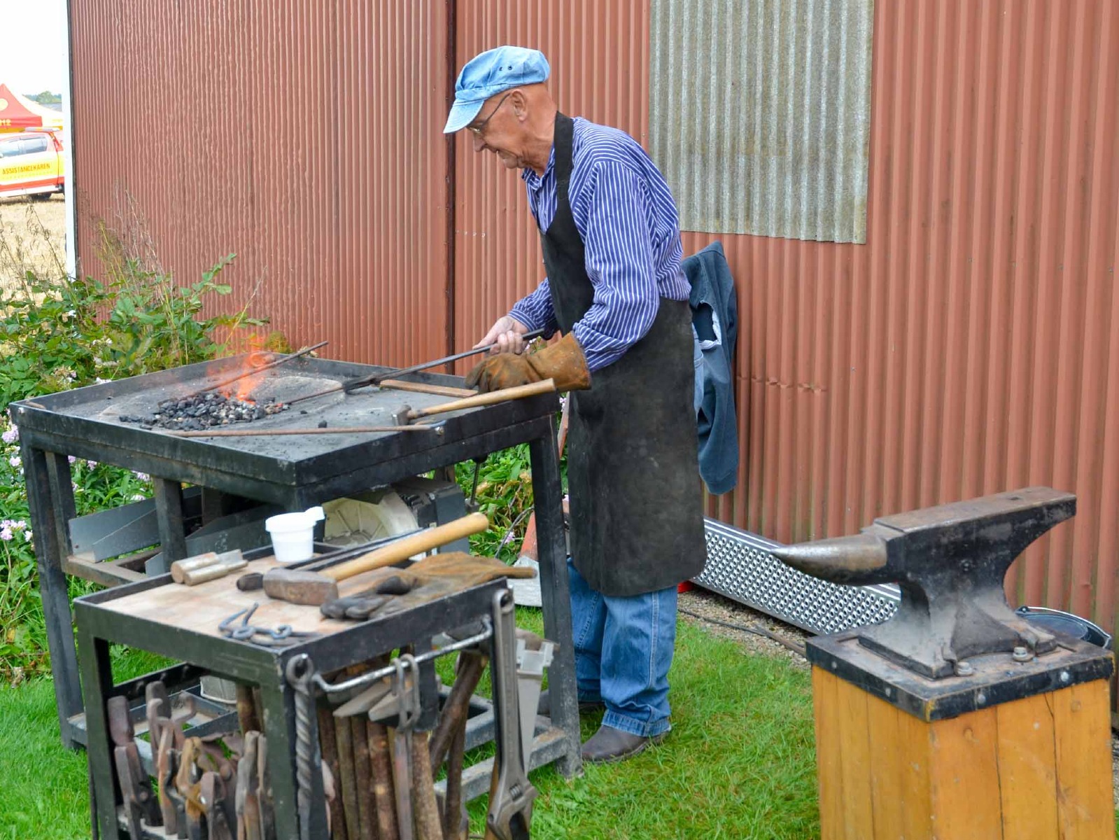 Vid en blick ut på parkeringen fick jag syn på en bekant vit Golf2. Kan det vara Nils-Gunnar? Jodå, efter en stund dök han upp i VMKS-tältet,