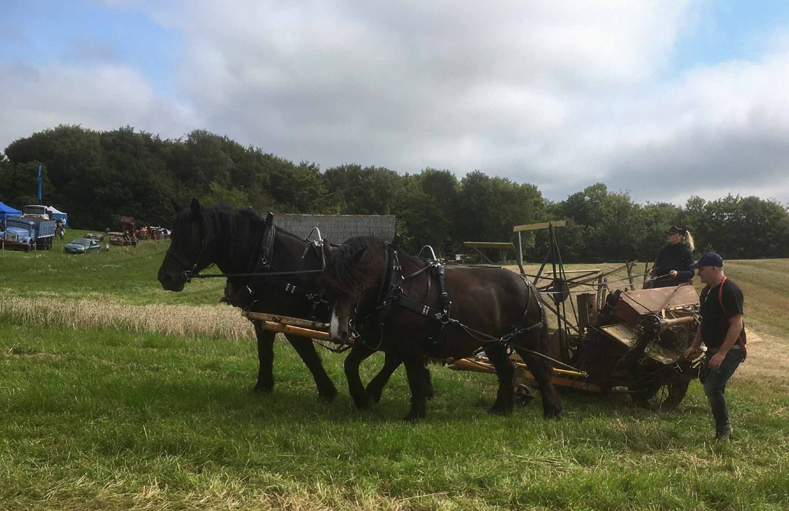 Skördedag Stubbarp. Ännu en trevlig dag i Stubbarp utanför Slimminge med bl.a stationärtröska och självbindare med hästar som är dagens höjdpunkt. //Sven