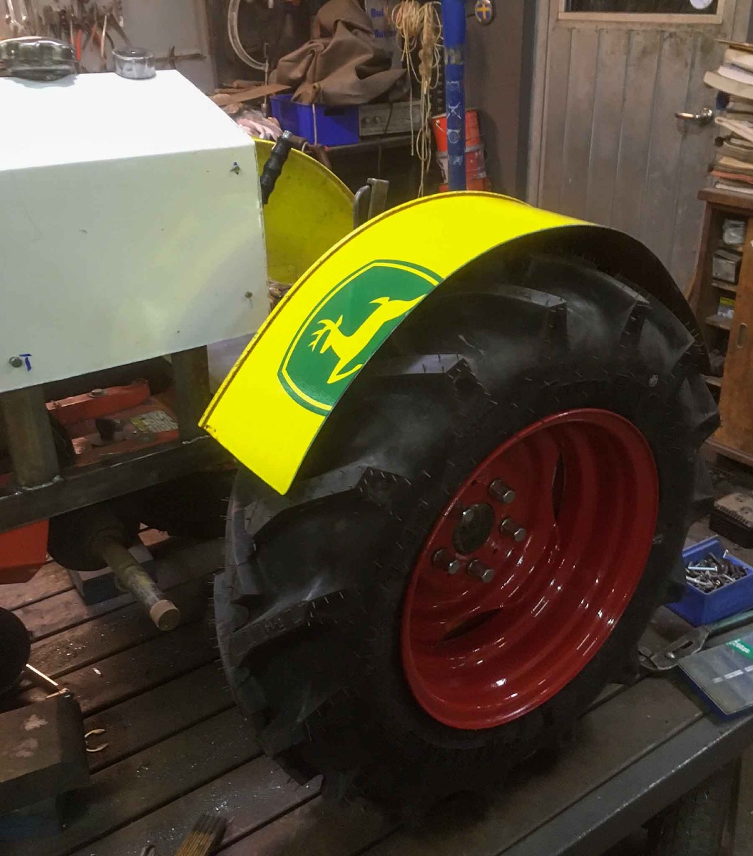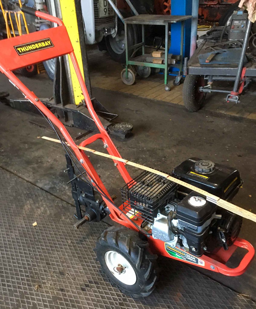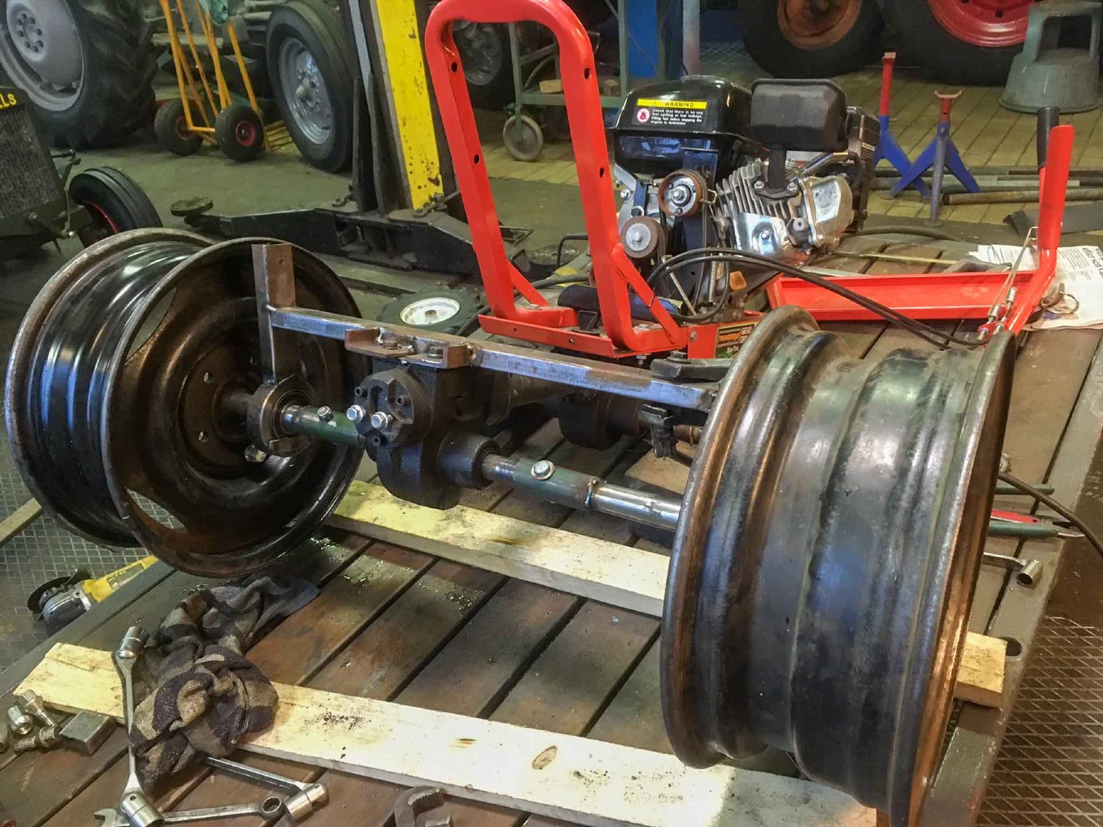 En dag innan jul kom en gammal kund och frågade om jag ville ha en jordfräs och man kan ju såklart inte säga nej. Tankarna gick. Jag har tidigare gjort fyra modeller av Munktells 25 men ingen som går att köra med. Nu kom chansen, vi kör! Jordfräsen har ju både fram och back och en fin 196cc motor. Det blev en del utmaningar. Det fanns inget stöd för drivaxlarna så jag fick hitta på! Framvagn hittade jag från en åkklippare, skärmar från oljefat, sitsen av en stekpanna, spakar från Morris, huvar av aluplåt, bakfälgar MB och drivaxlar Ford. Man tar vad man har! Bygget påbörjades den 4e januari och var klart den 25e januari. Kommer att visas på årsmötet hos Roger på restaurang Mat & Harmoni. Hälsningar Sven